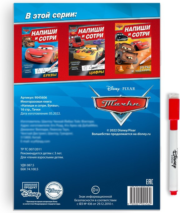 Disney Напиши и сотри. Буквы. Тачки-40% +31