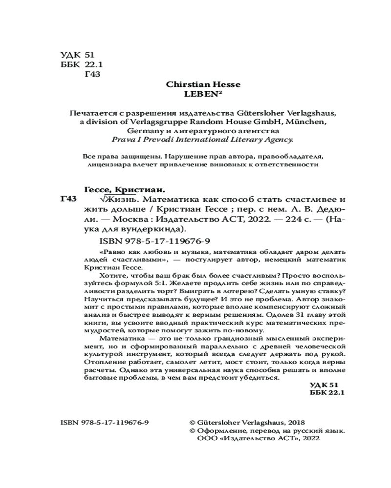 💳 Оплатить за товар можно при получении 🇰🇿 Есть бесплатная доставка по Казахстану от 1 дня 🎁 Копите бонусы с каждой покупки Серия: Наука для вундеркинда «Равно как любовь и музыка, математика обладает даром делать людей счастливыми», — постулирует автор, немецкий математик Кристиан Гессе. |