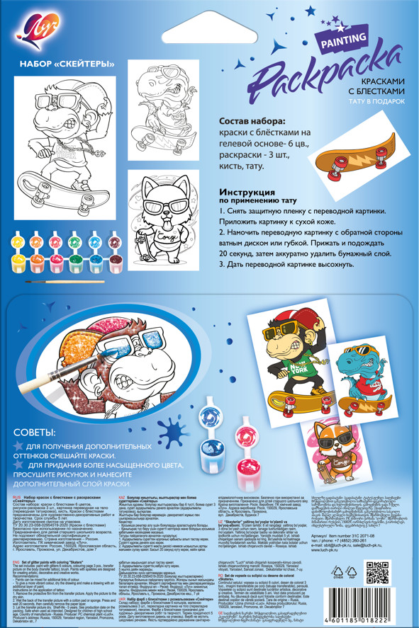 💳 Оплатить за товар можно при получении 🇰🇿 Есть бесплатная доставка по Казахстану 🎁 Копите бонусы с каждой покупки Серия: Волшебная палитра Теперь можно забыть о скучных, тусклых раскрасках, ведь сейчас ваш рисунок не только заиграет яркими красками, но и в прямом смысле этого слова — засияет! В набор для детского творчества входит 3 карточки с изображением. Такой набор — отличный подарок. Так же в каждый набор вложен подарок — яркая татуировка (смываемая и переводная картинка). |