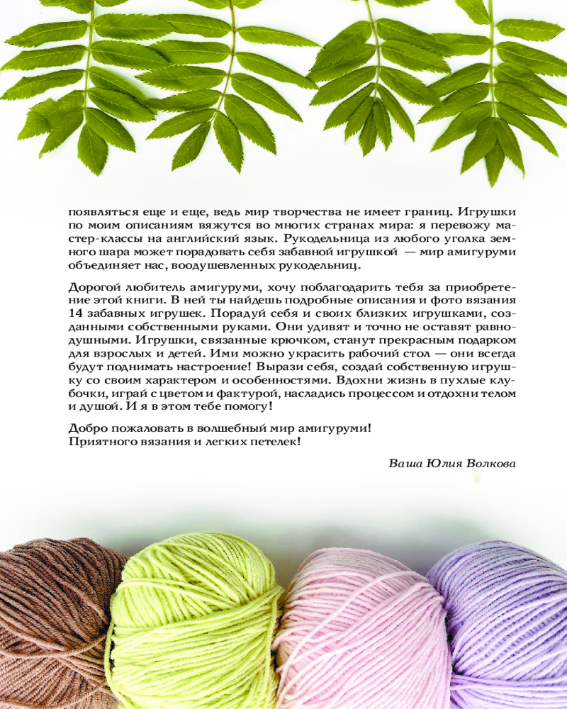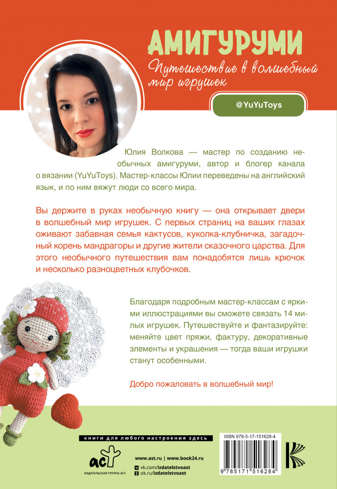 💳 Оплатить за товар можно при получении 🇰🇿 Есть бесплатная доставка по Казахстану от 1 дня 🎁 Копите бонусы с каждой покупки Серия: Мастера рукоделия Юлия Волкова — мастер по созданию необычных амигуруми, автор и блогер канала о вязании (YuYuToys). Мастер-классы Юлии переведены на английский язык, и по ним вяжут люди со всего мира. |