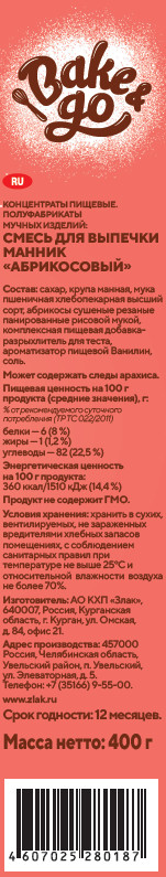 Смесь для выпечки манника «Абрикосовый» | Bake&Go | Увелка