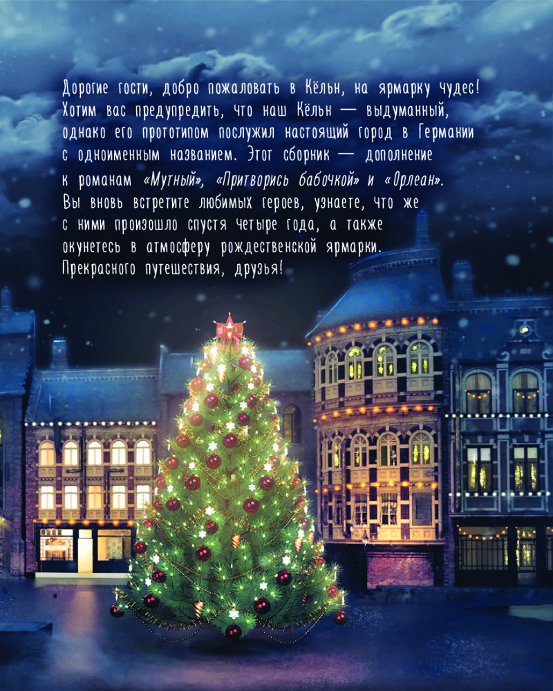 Это рождественская сказка, в которой герои трёх книг: «Орлеан», «Мутный» и «Притворись бабочкой», — встретятся на Кёльнской ярмарке.