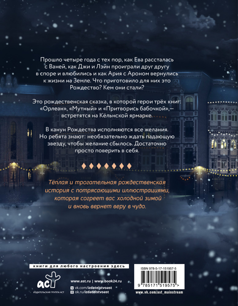 В данный момент этот товар отсутствует в продаже. Возможно, у нас найдется аналогичный или похожий товар здесь. Серия: Wattpad. ТОП на русском Прошло четыре года с тех пор, как Ева рассталась с Ваней, как Джи и Лэйн проиграли друг другу в споре и влюбились и как Ария с Ароном вернулись к жизни на Земле. Что приготовило для них это Рождество? Кем они стали?