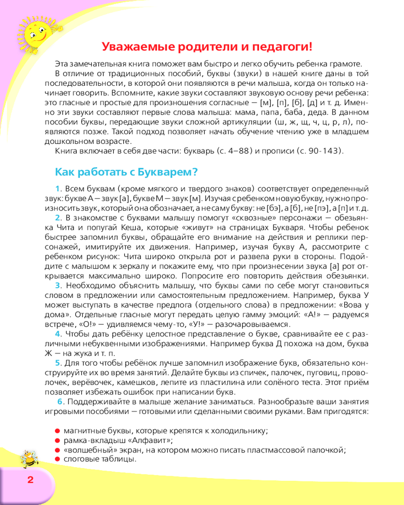 💳 Оплатить за товар можно при получении 🇰🇿 Есть бесплатная доставка по Казахстану от 1 дня 🎁 Копите бонусы с каждой покупки Серия: Учимся с Олесей Жуковой В этой книге, в отличие от традиционных пособий, буквы представлены не по алфавиту, а в той последовательности, в которой они появляются в речи малыша: начиная от простых для произношения и заканчивая сложными. Таким образом можно обучать грамоте не только дошкольников, но и малышей, начинающих произносить свои первые слова, а также детей, испытывающих проблемы с речью. Забавные персонажи, которых вы встретите на страницах книги, дают малышу зрительные и двигательные подсказки, что значительно облегчает один из самых сложных процессов — соотнесение звука с буквой. Благодаря ярким картинкам и крупным буквам для чтения и обводки, процесс обучения станет простым, увлекательным и максимально результативным. |