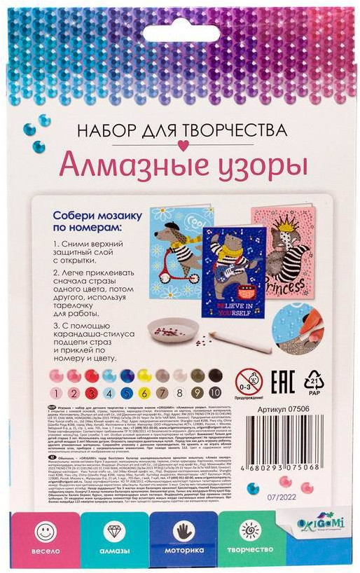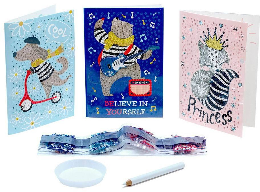 Созданные своими руками открытки из страз, станут прекрасным подарком для родных и близких! Сделать такой яркий и необычный комплимент сможет не только взрослый, но и ребенок. Сними защитный слой с клеевой основы на обложке, и с помощью карандаша — стилуса приклеивай яркие стразы по номеру и цвету. Блестящий результат поразит всех!