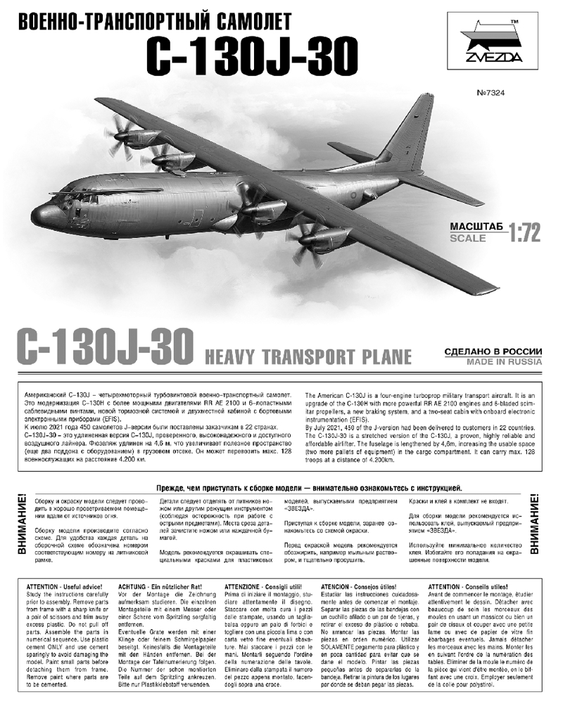 Звезда Самолет военно-транспортный «С-130J-30»В данный момент этот товар отсутствует в продаже. Возможно, у нас найдется аналогичный или похожий товар здесь. Американский C-130J — четырёхмоторный турбовинтовой военно-транспортный самолёт. Это модернизация C-130H с более мощными двигателями RR AE 2100 и 6-лопастными саблевидными винтами, новой тормозной системой и двухместной кабиной с бортовыми электронными приборами (EFIS). К июлю 2021 года 450 самолётов J-версии были поставлены заказчикам в 22 странах. |