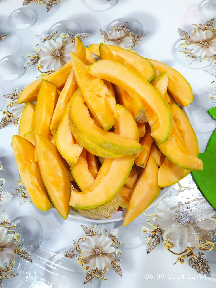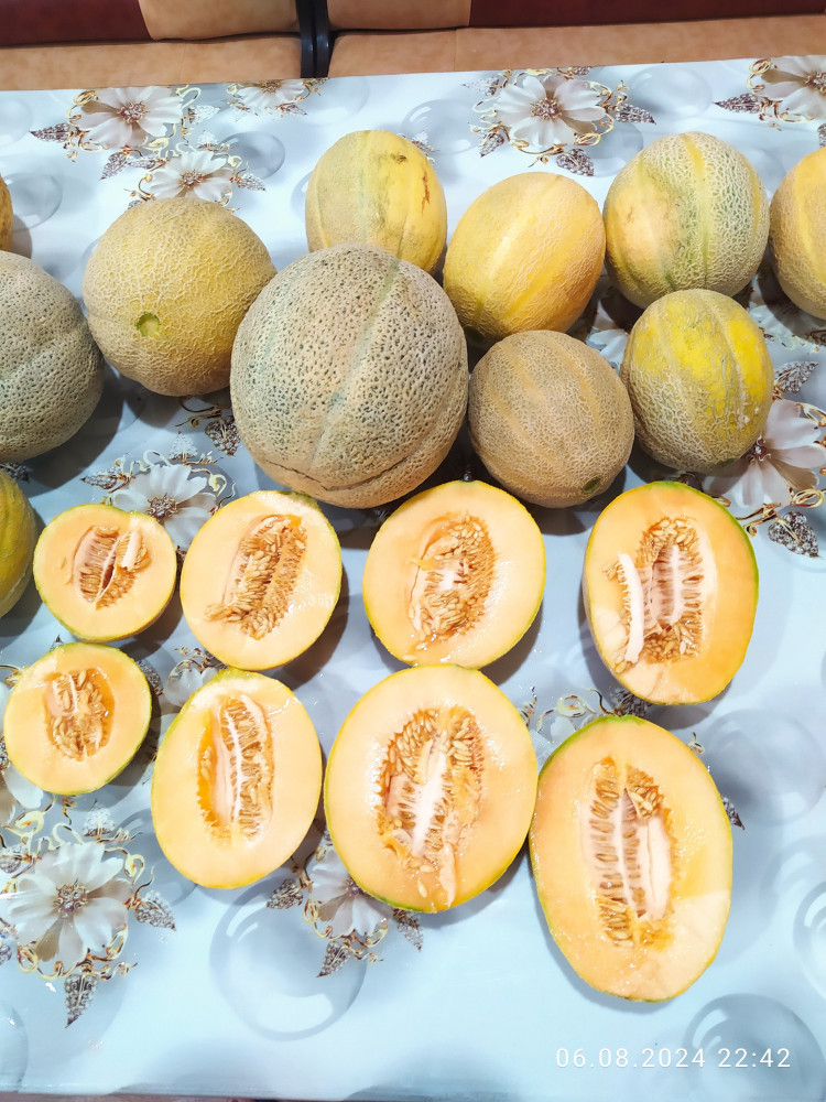Урожайный сорт дыни сортотипа канталупа. Плоды весом от 500 граммов до 2.5 кг. Мякоть красно оранжевая, сладкая, сочная ароматная. Рекомендую 👍🏻