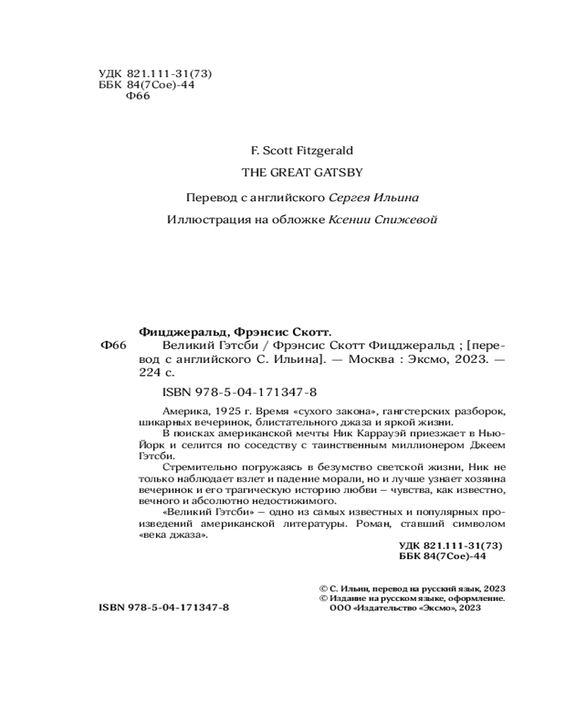 Великий ГэтсбиВ данный момент этот товар отсутствует в продаже. Возможно, у нас найдется аналогичный или похожий товар здесь. «Великий Гэтсби» — одно из самых известных и популярных произведений американской литературы, которое рассказывает о «веке джаза», блестящей эпохе музыки и развлечений. Роман был переведен на многие языки мира, и с момента публикации в 1925 году был переиздан более 4000 раз. Книга вошла в список «100 лучших англоязычных романов XX века» и была экранизирована несколько раз. Последняя блистательная экранизация вышла в 2013 году, главные роли в которой исполнили Леонардо Ди Каприо, Тоби Магуайр и Кэри Маллиган. |