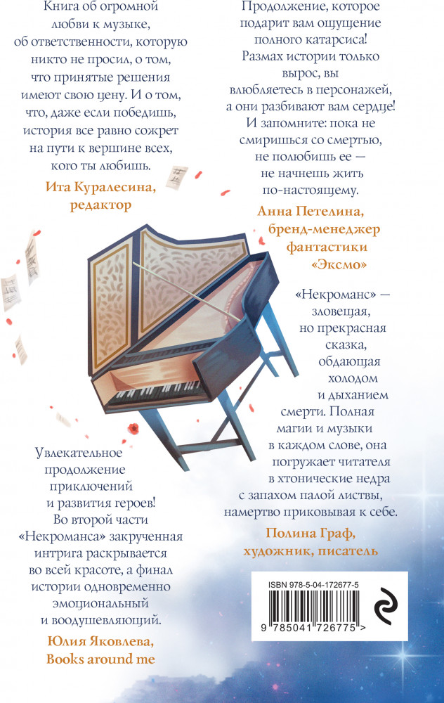 Некроманс. Opus 2В данный момент этот товар отсутствует в продаже. Возможно, у нас найдется аналогичный или похожий товар здесь. Серия: Охотники за мирами Тьма над Керфи сгущается. Чтобы удержать свою власть, королева Айрес готова на всё. Другой враг уже подобрался к Избранной вплотную. Пока Герберт ищет способ вернуть Еву к жизни, девушка пытается убедить противников королевы действовать сообща. Но могут ли её слова перечеркнуть десятилетия вражды и непонимания? Кольцо интриг сжимается всё стремительнее. Пьеса подходит к концу. И одним богам известно, какую партию в ней сыграет демон с синими глазами, что следует за Евой по пятам. |