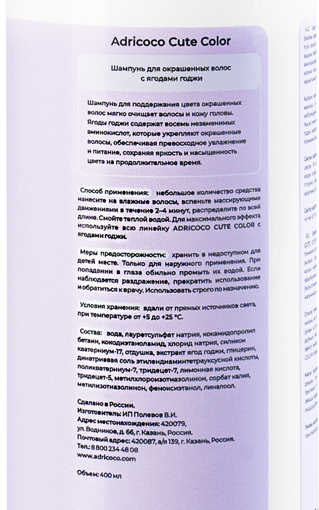 Adricoco Шампунь для окрашенных волос с ягодами годжи