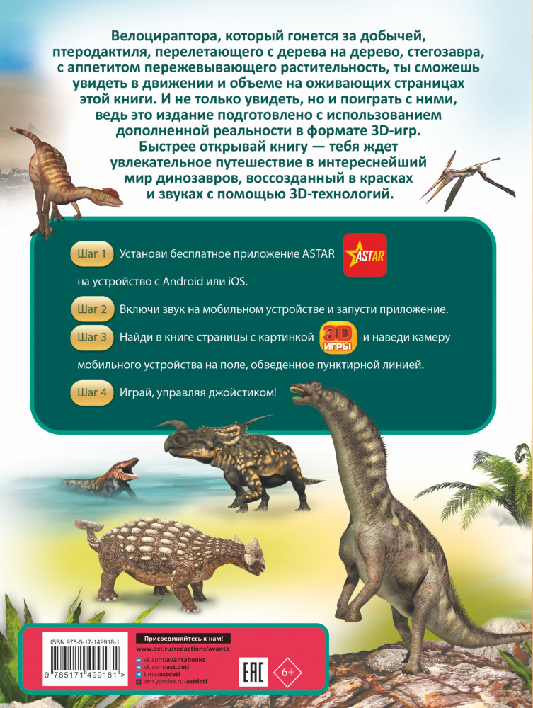 💳 Оплатить за товар можно при получении 🇰🇿 Есть бесплатная доставка по Казахстану от 1 дня 🎁 Копите бонусы с каждой покупки Серия: Твоя первая энциклопедия с дополненной реальностью Первая энциклопедия с дополненной реальностью познакомит тебя с динозаврами, которых ты сможешь увидеть в объеме, движении и звуковом сопровождении. Для среднего школьного возраста. |