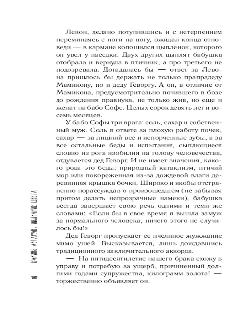 Отзывается многое из того, что пишет Наринэ Абгарян. Слог лёгкий, юмор прекрасный. Просто о сложном. Молчание цвета - о важном. О том как пережить потерю, как продолжать жить, как улыбаться и быть счастливым. Как помнить и любить.