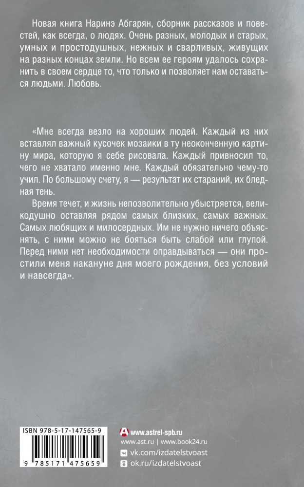 Мне нравится, как пишет Абгарян. Это всегда трогательно и жизненно. В книги две повести и авторские очерки, понравилось все, но повести все-таки больше.