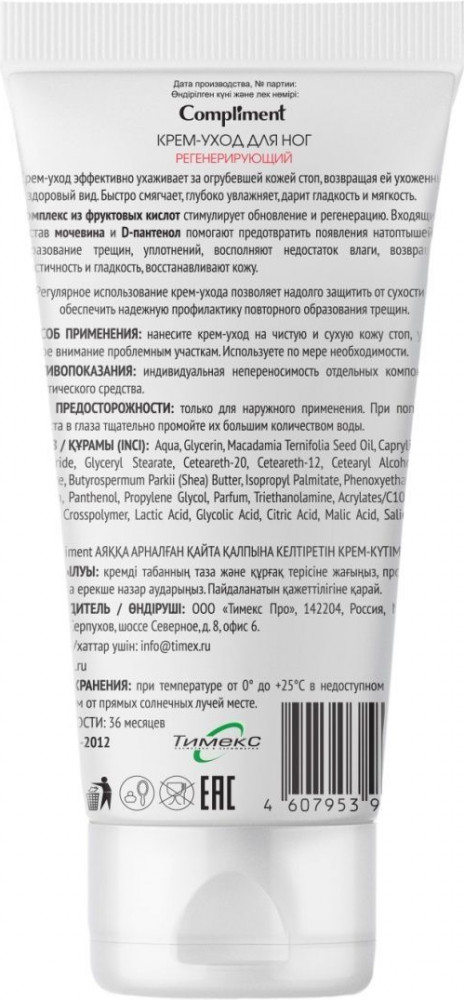 Compliment Крем для ног «Регенерирующий»+21 объем текстура впитываемость заживление