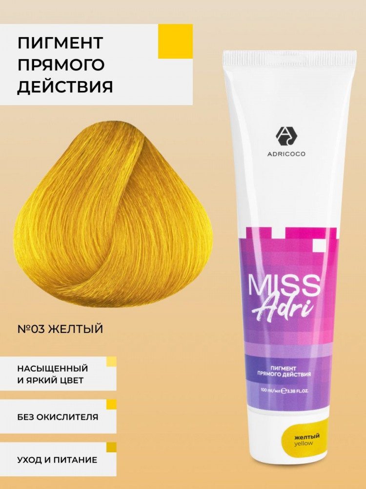 Adricoco Пигмент прямого действия для волос, оттенок Желтый
