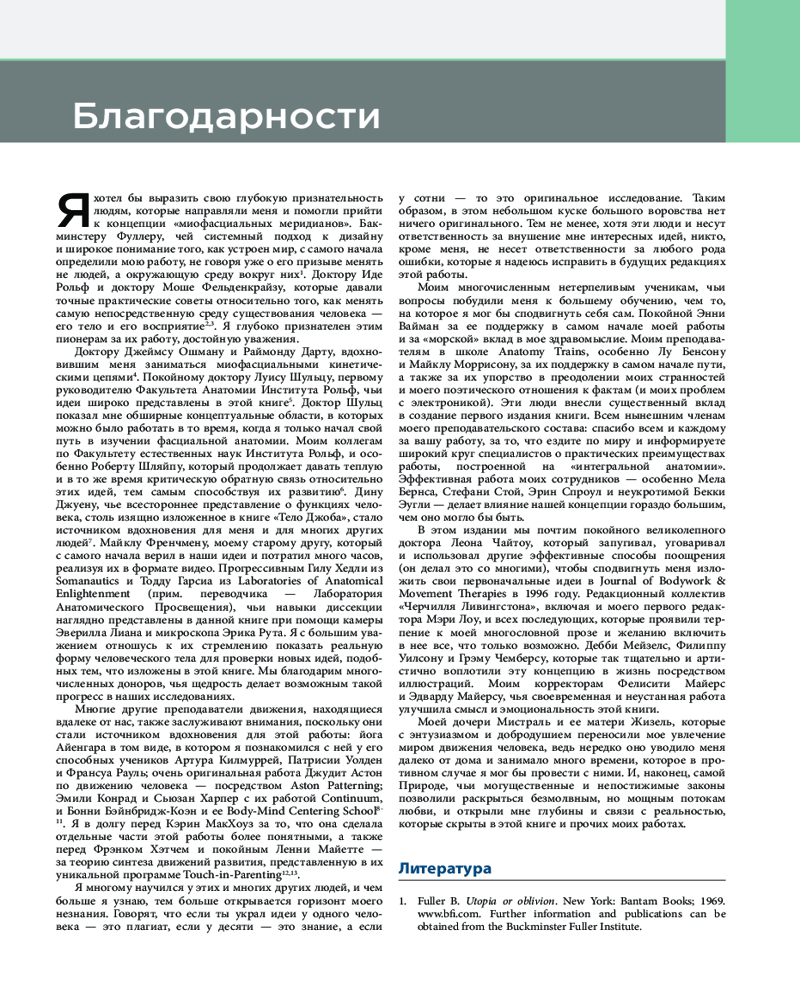 — раздел про трансмиссионную силу в gait dynamics написан в соавторстве со специалистом в этой области Джеймсом Графом, а данные по структурной интеграции — на основе работ Иды Рольф;