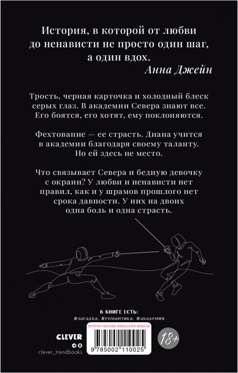 Парадокс СевераВ данный момент этот товар отсутствует в продаже. Возможно, у нас найдется аналогичный или похожий товар здесь. Серия: #trendbooks «Парадокс Севера» — это история любви, противостояния сложных характеров и выбора, которые каждый день делают герои. Быть страстным и обжигать холодом... Трость, черная карточка и холодный блеск серых глаз. В академии Севера знают все. Его боятся, его хотят, ему поклоняются. Фехтование — ее страсть. Диана учится в академии благодаря своему таланту. Но ей здесь не место. Что связывает Севера и бедную девочку с окраин? У любви и ненависти нет правил, как и у шрамов прошлого нет срока давности. У них на двоих одна боль и одна страсть. «Парадокс Севера» понравится всем поклонникам Анны Джейн и необычных историй любви. |