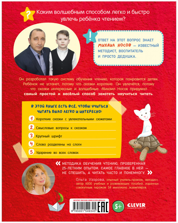 Школьное чтение. Большая книга сказок. Читаем по слогамВ данный момент этот товар отсутствует в продаже. Возможно, у нас найдется аналогичный или похожий товар здесь. Серия: Школьное чтение Каким волшебным способом легко и быстро увлечь ребёнка чтением? Ответ на этот вопрос знает Михаил Носов — известный методист, воспитатель и просто дедушка. Он разработал такую систему обучения чтению, которая понравится детям. Ребёнок не устанет, потому что сказки короткие. Он увлечётся, потому что сказки интересные и волшебные. Михаил Носов придумал самый простой и весёлый способ захотеть научиться читать. В этой книге есть всё, чтобы учиться читать было легко и интересно: |