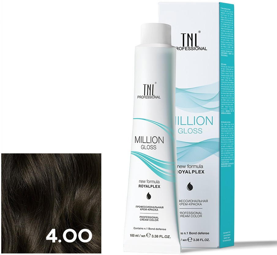 TNL Professional Крем-краска для волос профессиональная, оттенок 4.00 Коричневый интенсивный