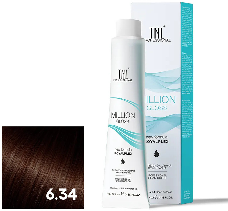 TNL Professional Крем-краска для волос профессиональная, оттенок 6.34 Темный блонд золотистый медный