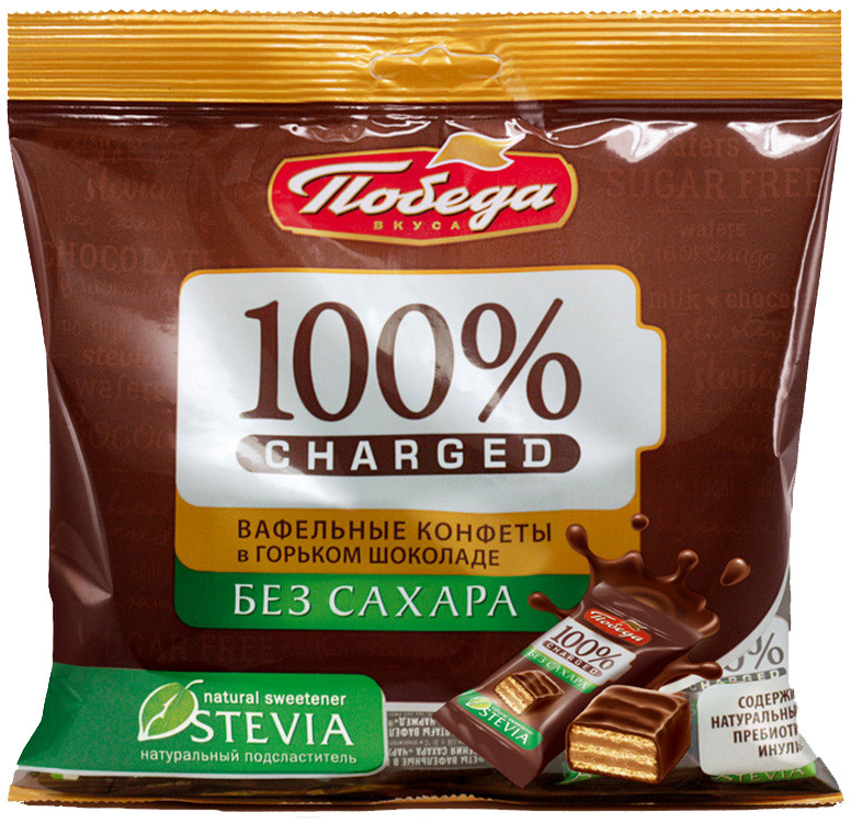 Победа Конфеты вафельные в горьком шоколаде без сахара «100% Charged»
