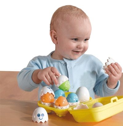 Моя дочь с шести месяцев играет этой игрушкой, сейчас ей 2,8 и она до сих пор находит способы включать в игру пищащих птенцов... То она "купила" в магазине яйца, а из них вылупились птенцы и поэтому яичницы не будет, ... то строит дерево, на котором полно живности и конечно же гнездо с яйцами... в общем много чего... качество исполнения отличное (наши птенчики все еще отлично пищат)) рисунок не стерся, несмотря на то, что дочь любительница все мыть. Кроме того несмотря на всю кажущуюся простоту игрушки для маленького человечка она содержит очень много информации: цвета, счет, фигуры, моторика, эмоции (у каждого яичка различное выражение мордашки), целостность предмета (можно перемешать "шапочки" и попросить ребенка подобрать каждому соответствующую)... Мы этот этап миновали и теперь эта игрушка участник уроков английского языка и незаменимый друг в остальных играх!
