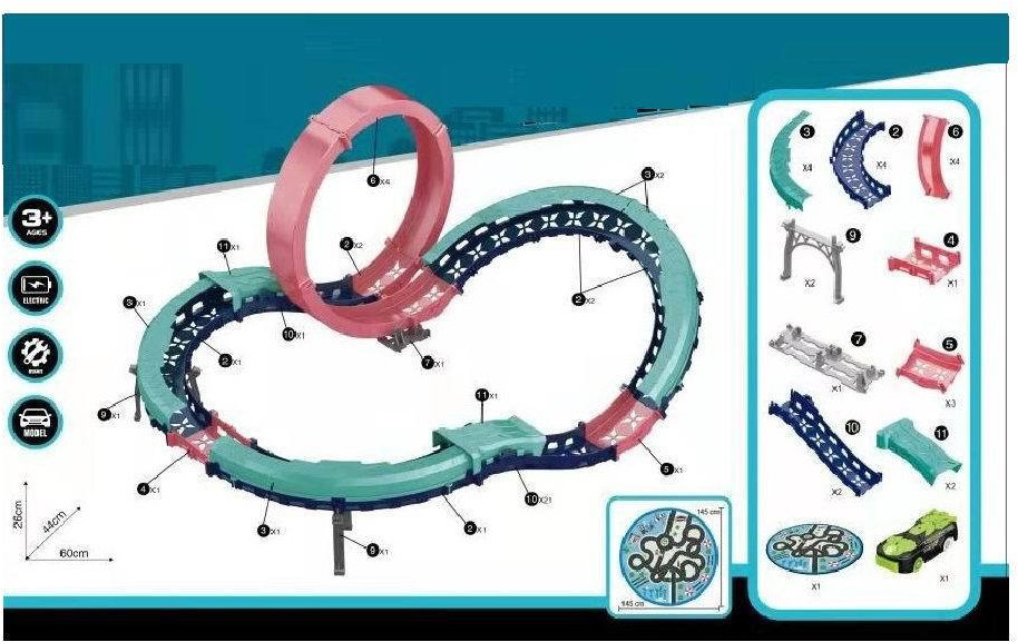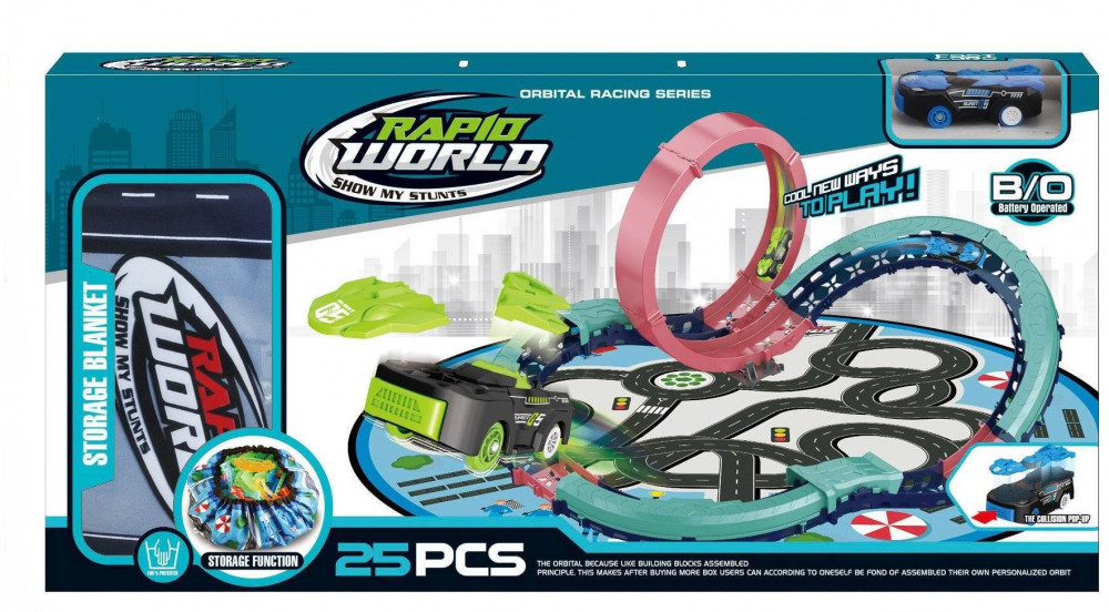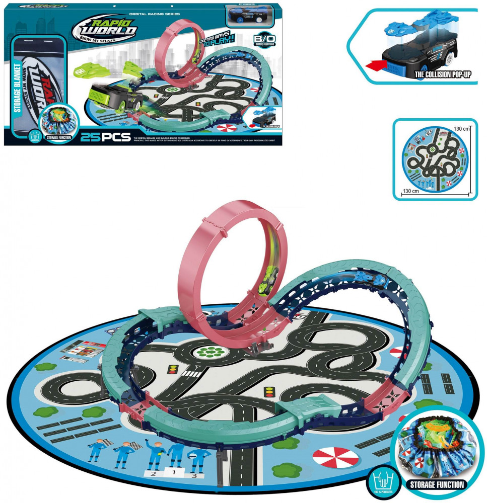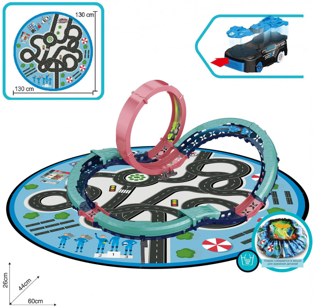 Современный трек станет отличным подарком для мальчика. Перед началом игры трек нужно собрать, а затем включить машинку, разместить ее на трассе, отпустить и наблюдать за ее высокоскоростным заездом по сложной разновысотной трассе с коварной мертвой петлей. Машинка, входящая в состав данного набора, уникальна, она разлетается на части после столкновения с препятствием. Ее целостность легко восстановить путем несложной сборки. Дополняет набор игровой коврик, который во время игры можно использовать как игровое поле и подложку под трек, а после игры его можно легко превратить в удобный мешок для хранения деталей набора. Увлекательный игровой процесс и хорошее настроение гарантированы! |
