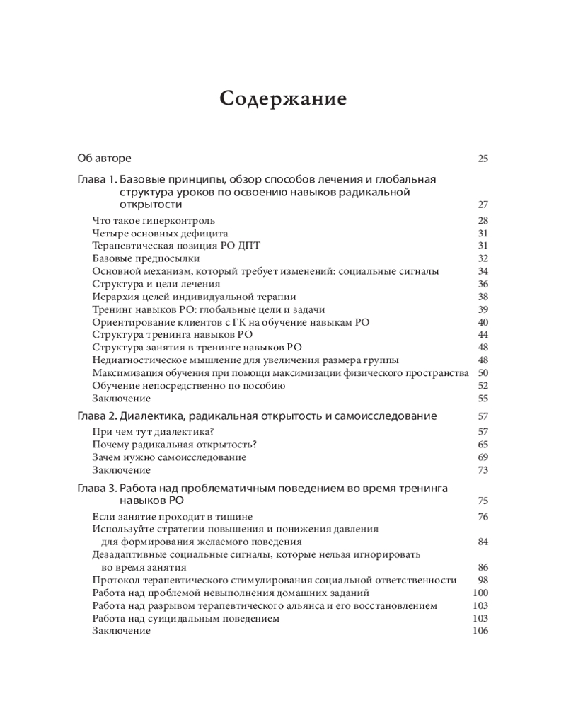 В этом руководстве вы найдете пошаговые инструкции для тренеров, практические упражнения и клинические советы в отношении того, как лучше справляться с дезадаптивным поведением во время занятий. Также здесь представлено краткое теоретическое обоснование выбора мер воздействия, детально изложенных в учебнике Радикально открытая диалектическая поведенческая терапия. Терапевтам, работающим с клиентами, которые страдают от расстройств, связанных с ГК, это всеобъемлющее руководство поможет повысить эффективность лечения.