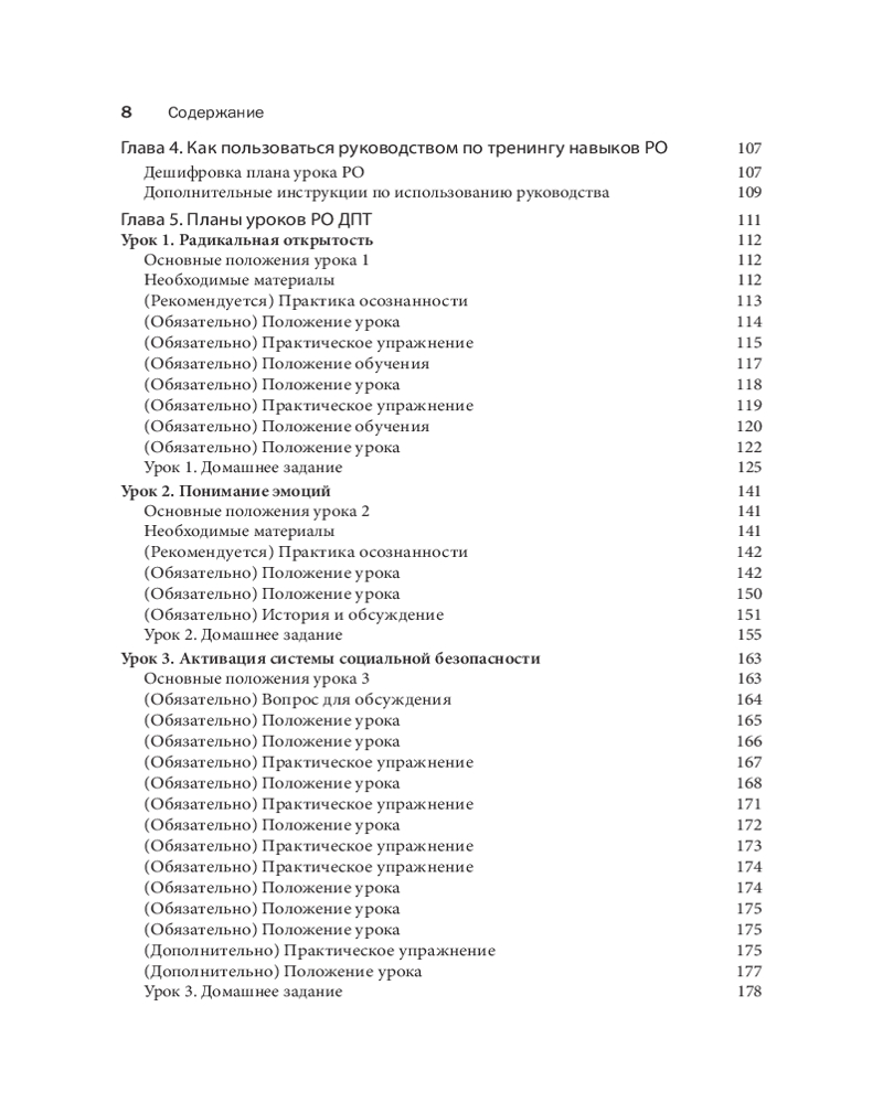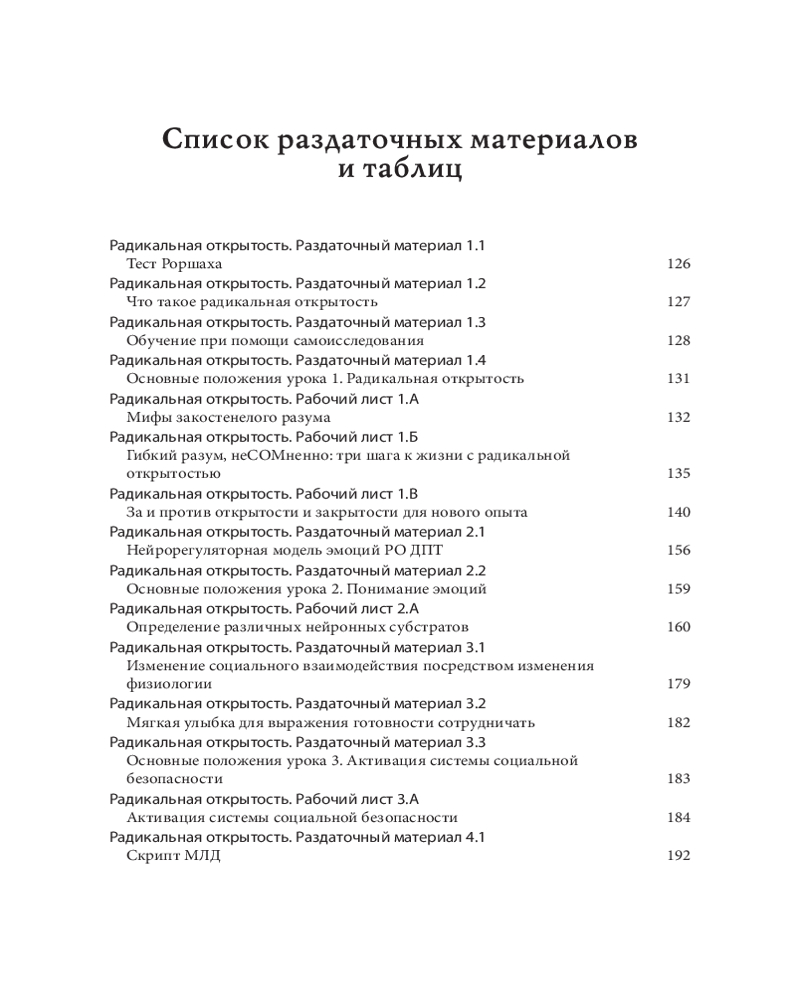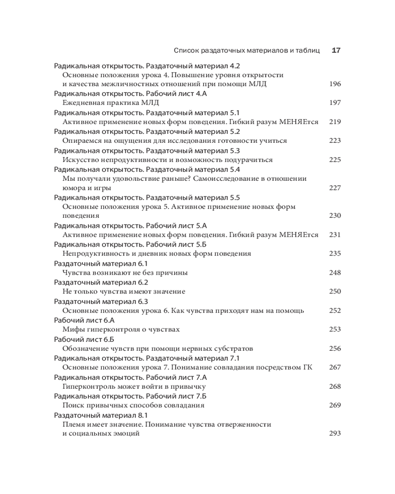 В книге представлены полное пошаговое руководство для проведения групповых занятий по обучению навыкам РО ДПТ, а также все необходимые раздаточные материалы и рабочие листы для самостоятельной и групповой практики, которые можно распечатать и раздать участникам занятий. В книге собрано необходимое, чтобы помочь людям с гиперконтролем полноценно жить и отпустить контроль там, где в нем нет необходимости.