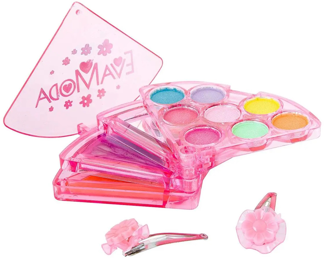 Серия: Eva Moda Удивительный набор от Evamoda может превращаться в дольку от круга или принимать опять круглую форму! Так и маленькие модницы могут менять образы, превращаясь с помощью магии макияжа. Такой набор необходим каждой девочке, которая учится быть взрослой и красивой, подражая маме! Радости и восторгу юной принцессы не будет предела. Детская косметика «EvaModa» — это замечательный подарок для девочек. Вся косметика полностью безвредна для детской кожи и макияж легко смывается. |