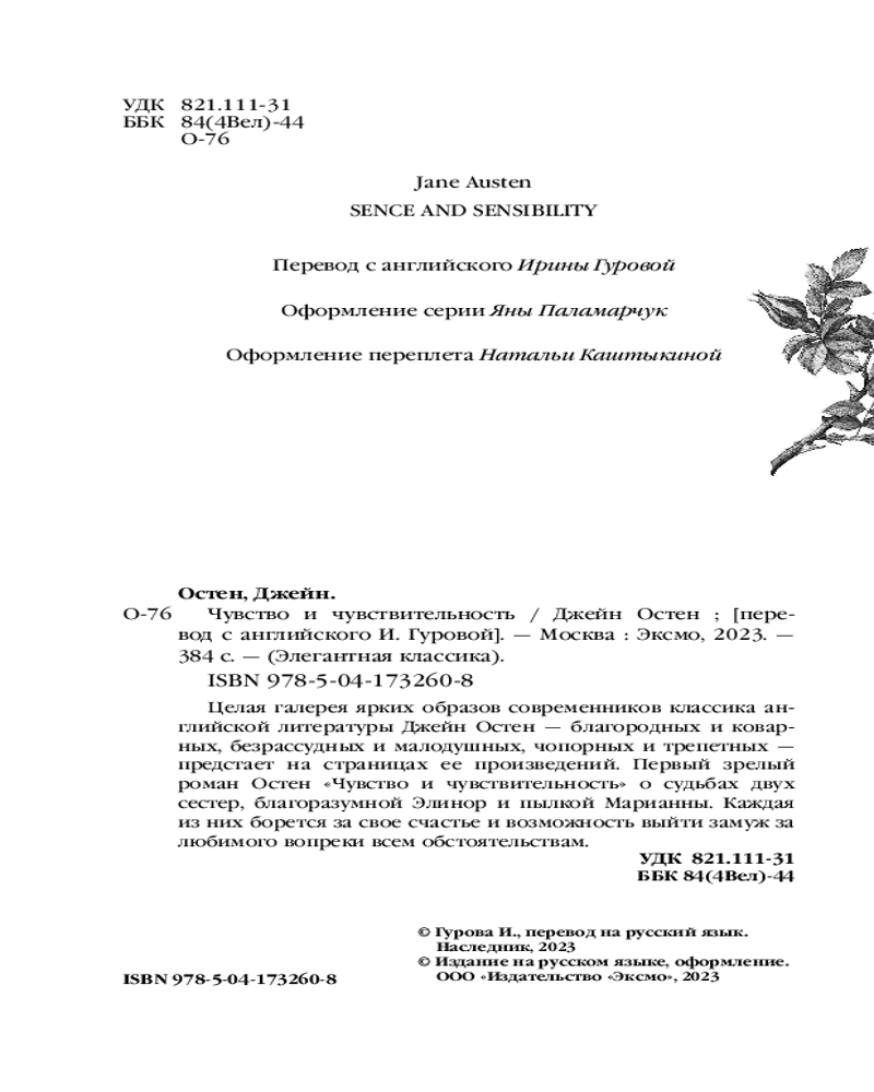 💳 Оплатить за товар можно при получении 🇰🇿 Есть бесплатная доставка по Казахстану от 1 дня 🎁 Копите бонусы с каждой покупки Серия: Элегантная классика Целая галерея ярких образов современников классика английской литературы Джейн Остен — благородных и коварных, безрассудных и малодушных, чопорных и трепетных — предстает на страницах ее произведений. Первый зрелый роман Остен «Чувство и чувствительность» о судьбах двух сестер, благоразумной Элинор и пылкой Марианны. Девушки видят мир по-разному: одна прислушивается к голосу сердца, другая поступает так, как велит ей рассудок. Каждая из них борется за возможность выйти замуж за любимого вопреки всем обстоятельствам. Ведь обе отчаянно хотят одного и того же — любви и счастья. |