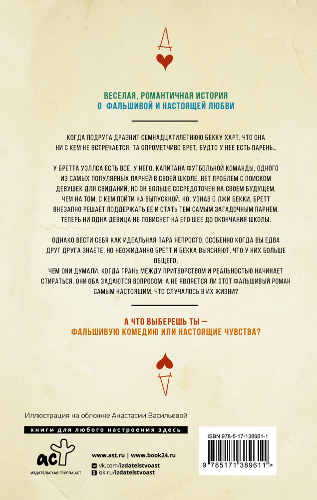 💳 Оплатить за товар можно при получении 🇰🇿 Есть бесплатная доставка по Казахстану от 1 дня 🎁 Копите бонусы с каждой покупки Серия: Мегабестселлеры Young Adult Когда подруга дразнит семнадцатилетнюю Бекку Харт, что она ни с кем не встречается, она опрометчиво врет, будто у нее есть парень... |