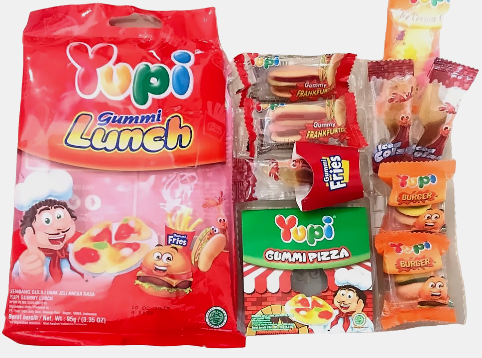 Yupi Конфеты жевательные «Gummy Lunch»В данный момент этот товар отсутствует в продаже. Возможно, у нас найдется аналогичный или похожий товар здесь. Жевательные конфеты от индонезийского производителя Yupi. В упаковке «ланч» из бургеров, картошки-фри, кусочков пиццы, хот-дога. Порадуйте себя или близких оригинальными вкусными сладостями! |