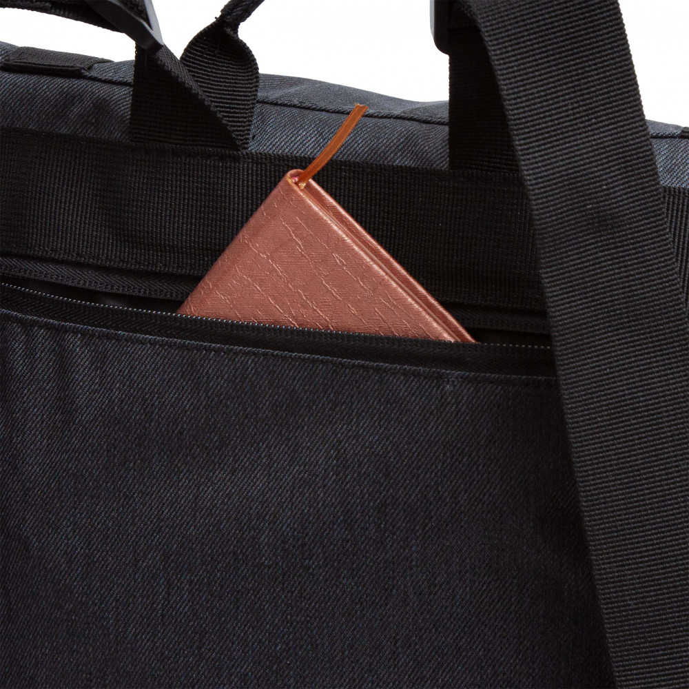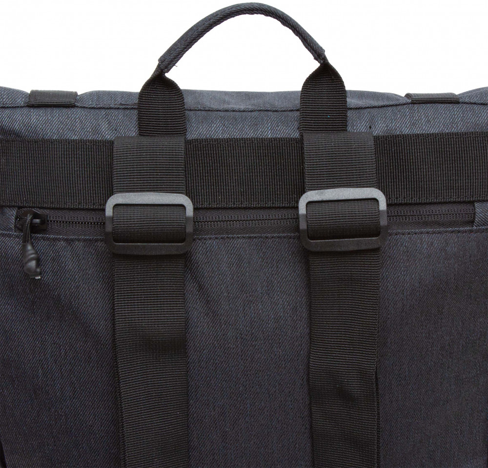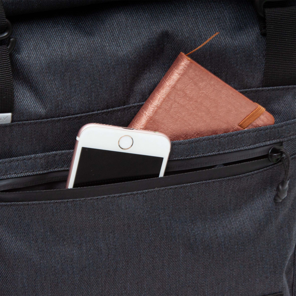 Удобный, вместительный, очень плотная ткань. При всем этом не выглядит громоздким