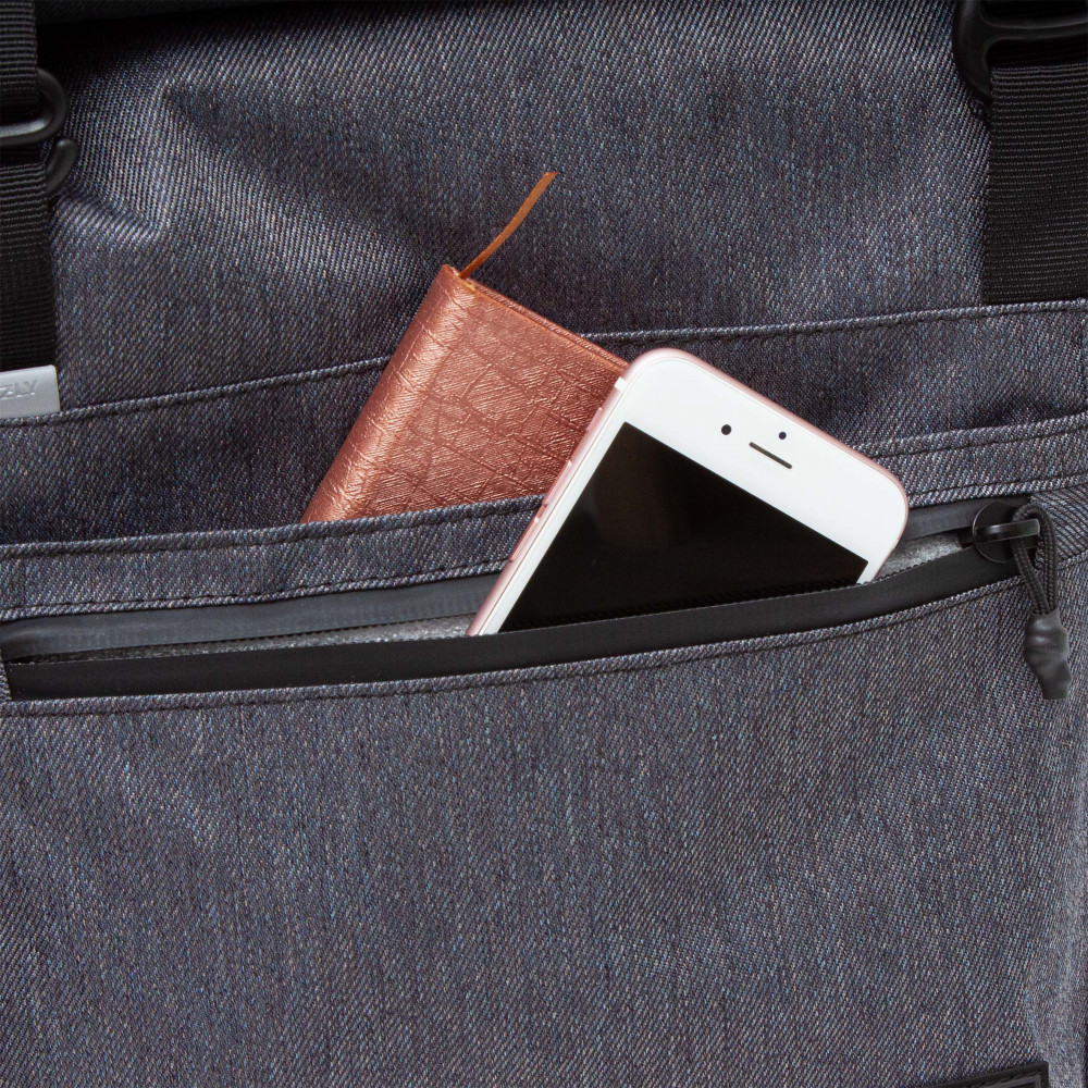 Удобный, вместительный, очень плотная ткань. При всем этом не выглядит громоздким