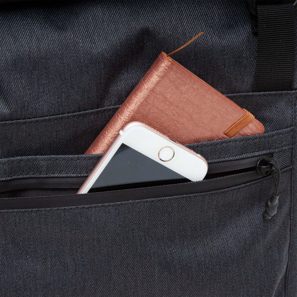 Удобный, вместительный, очень плотная ткань. При всем этом не выглядит громоздким
