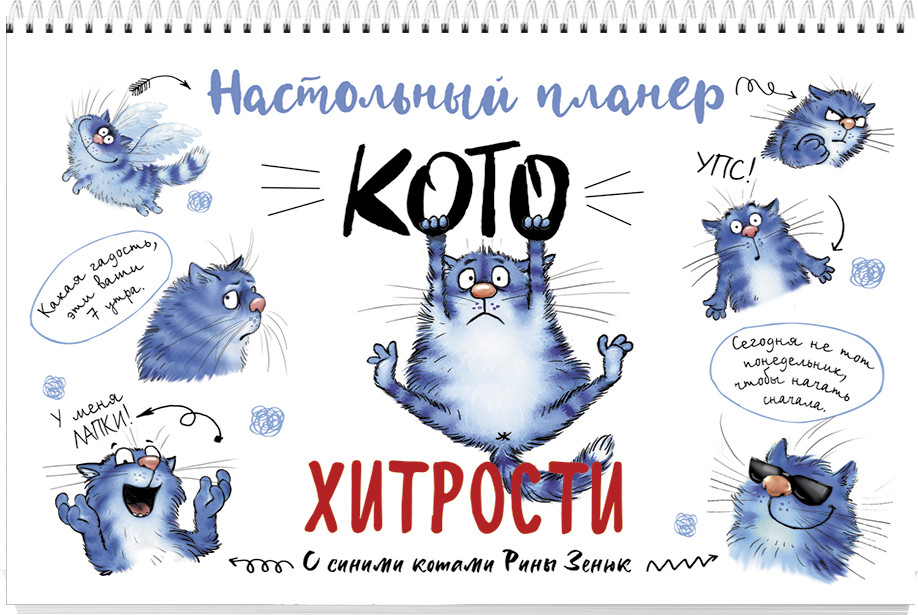 Планер настольный с синими котамиВ данный момент этот товар отсутствует в продаже. Возможно, у нас найдется аналогичный или похожий товар здесь. Серия: Планер с синими котами Рины Зенюк Перед вами настольный планинг, рассчитанный на целый год! С ним организация рабочих и личных дел превратится в сплошное удовольствие! Озорные синие коты, которых придумала и нарисовала известная художница Рина Зенюк, будут сопровождать вас каждую неделю, делясь саркастичными, но в то же время мудрыми мыслями. Заготовленные котами шаблоны для ведения записей не только помогут упорядочить мысли и планы, но и подарят заряд позитива. |