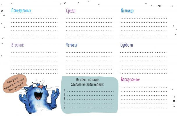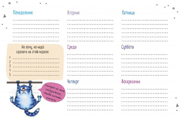 Планер понравился. Котики замечательные, фразы тоже. Взяла как неприевшийся, неизбитый презент. Дороговато, правда, но была скидка, поэтому терпимо.