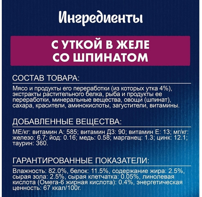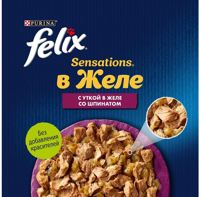 Felix Корм для кошек «Утка в желе со шпинатом»
