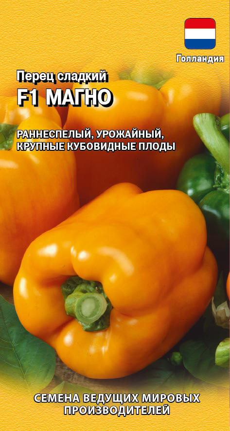 Урожайный, раннеспелый гибрид с длительным периодом плодоношения для теплиц и открытого грунта (южные регионы). Растение сильное, открытого типа, средней высоты. Хорошо адаптируется к стрессовым условиям выращивания. Устойчиво к вершинной гнили. Плоды кубовидной формы 4-х камерные, плотные, ароматные с толщиной стенок 6-7 мм. Масса 150-230 г. В технической спелости плоды зеленые, в биологической — оранжевые. Вкус и качество отличные. Рекомендуется для употребления в свежем виде, различных салатов, домашней кулинарии и консервирования. Посев на рассаду — в феврале. Глубина заделки семян в грунт не более 1 см. Высадка рассады — в мае. Пикировка в фазе 1-2-х настоящих листьев. После высадки у растения удаляют все боковые побеги и листья до первой развилки и подвязывают к опоре. Нельзя высаживать рассаду сладких и острых сортов перца рядом, т.к. происходит переопыление и сладкий перец приобретает горький вкус. |