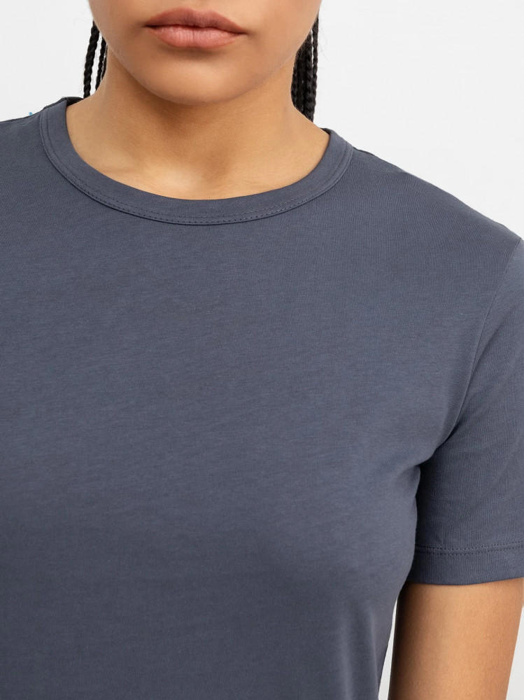 Женская футболка прямого силуэта классической длины. В составе полотна — натуральный хлопок. Вырез круглый, рукава короткие. Слегка спущенная линия плеча и немного углубленная пройма дарят свободу движений. Отличный вариант для спорта, домашних дел и прогулок!