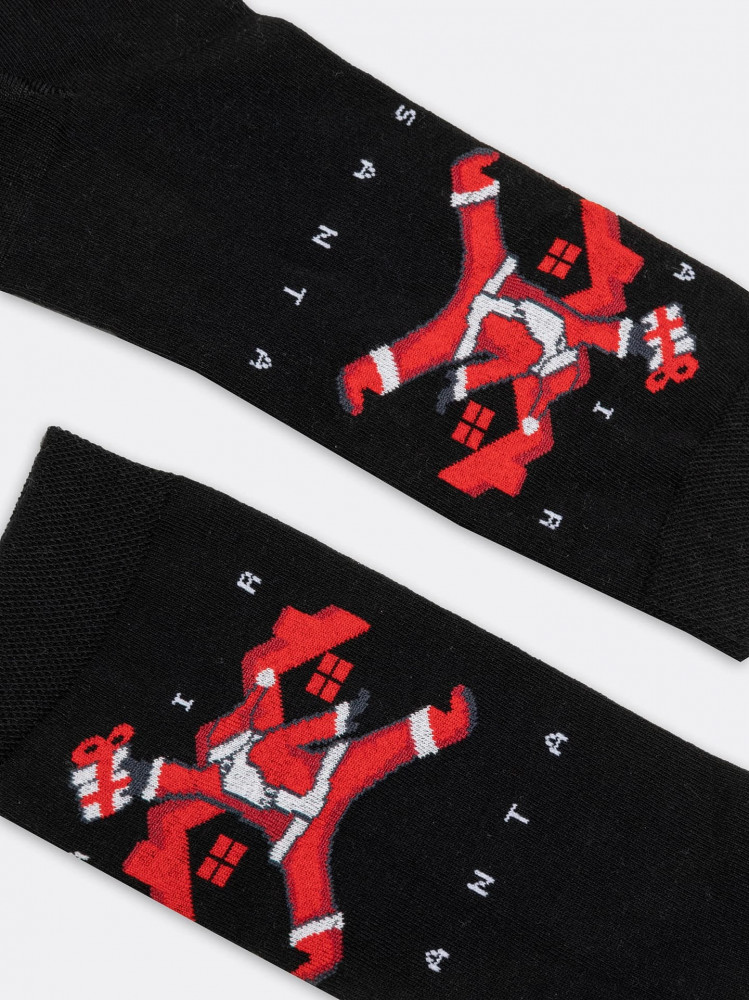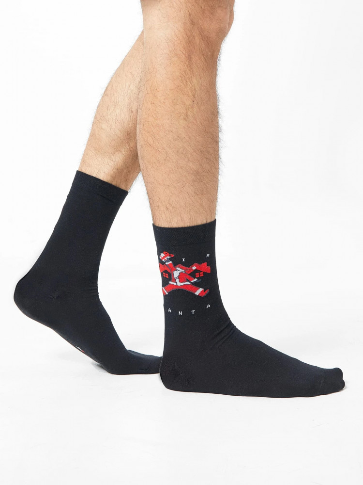 Носки мужские с рисунком на тему Нового года — отличная возможность внести разнообразие и поднять настроение. Длинные и короткие мужские носки с принтом изготовлены из гребенного хлопка — пряжи высочайшего качества, мягкой, тонкой, прочной. Натуральные волокна отлично пропускают воздух, позволяя коже дышать, и впитывают влагу, дарят ощущение комфорта в течение всего дня. Благодаря небольшому количеству эластана в составе, носки хорошо облегают стопу и сохраняют форму даже после множества стирок.