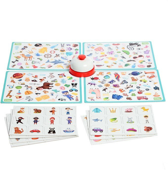 Игра интересная, на внимание. Детям 3,5 года, 9 лет интересно играть, искать предметы на скорость. В комплекте есть настольный звонок, который можно использовать и в других играх. Картон качественный, плотный, гладкий, изображения четкие, яркие. Также можно играть и в лото с карточками. Очень хорошая игра. Спасибо Flip.