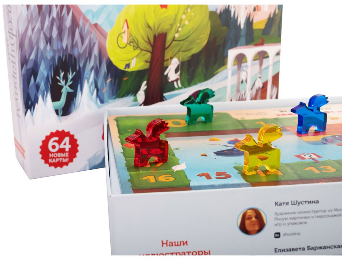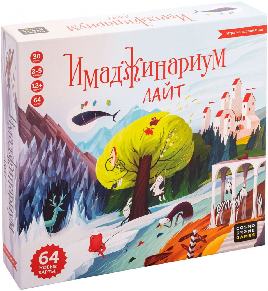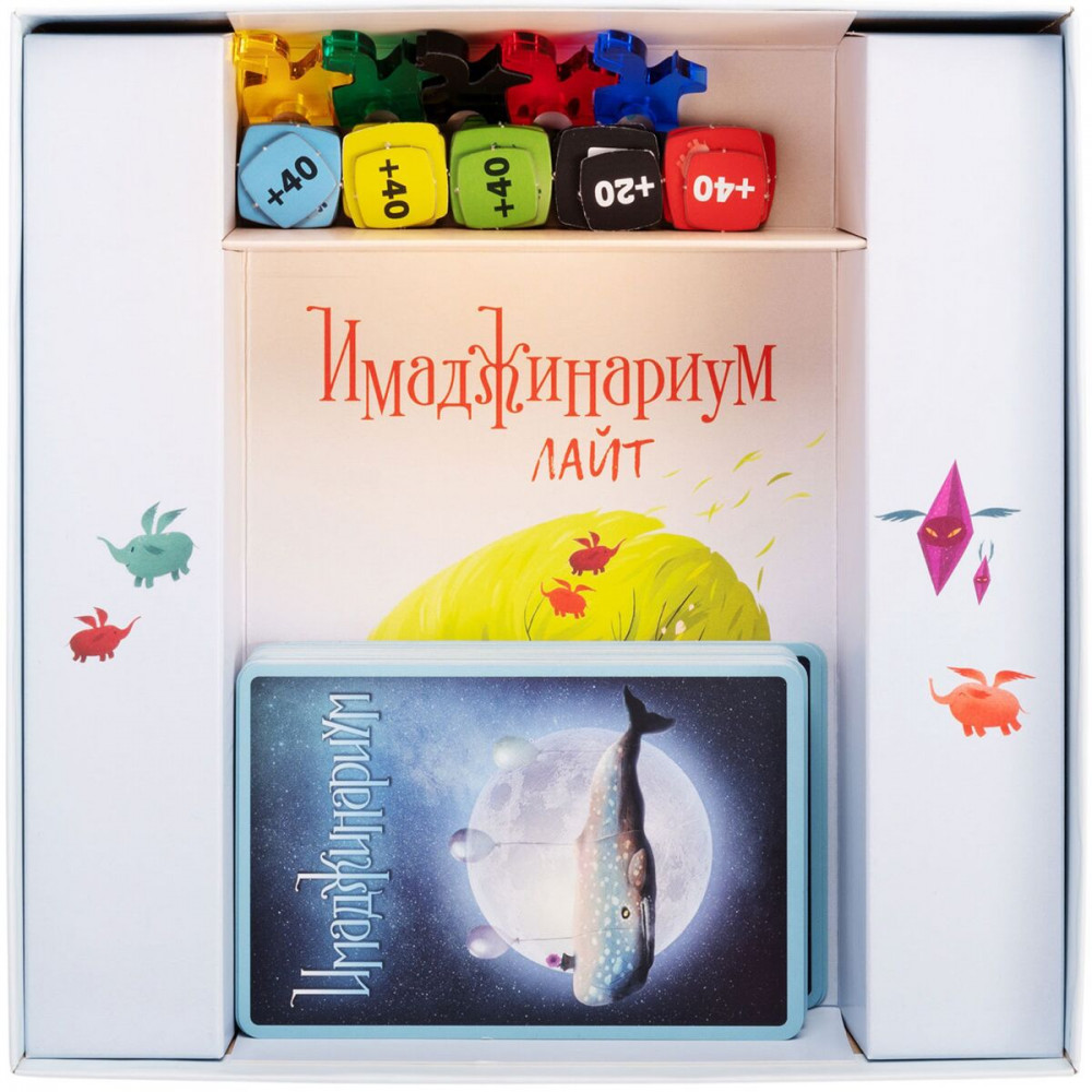 Пять волшебных пегасов станут вашими фишками игроков и проведут по фантастическому миру Имаджинариума. Отгадывайте чужие ассоциации, загадывайте свои так, чтобы вас поняли только несколько человек, и продвигайте своих пегасов вперёд по игровому полю, чтобы долететь до финиша раньше остальных игроков. Как и все «Имаджинариумы», «Лайт» идеально сочетается с любыми дополнениями — включая те, что мы ещё не выпустили. Так что игра не скоро надоест! Открывайте коробочку, седлайте пегасов и отправляйтесь в путешествие по самым невероятным мирам!