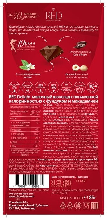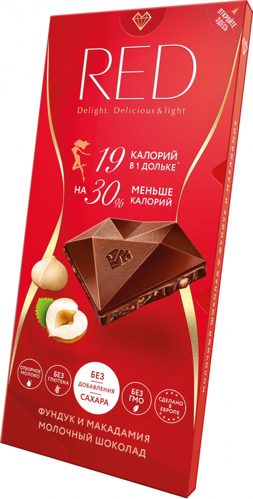 Red Шоколад молочный со сниженной калорийностью «Фундук и макадамия»