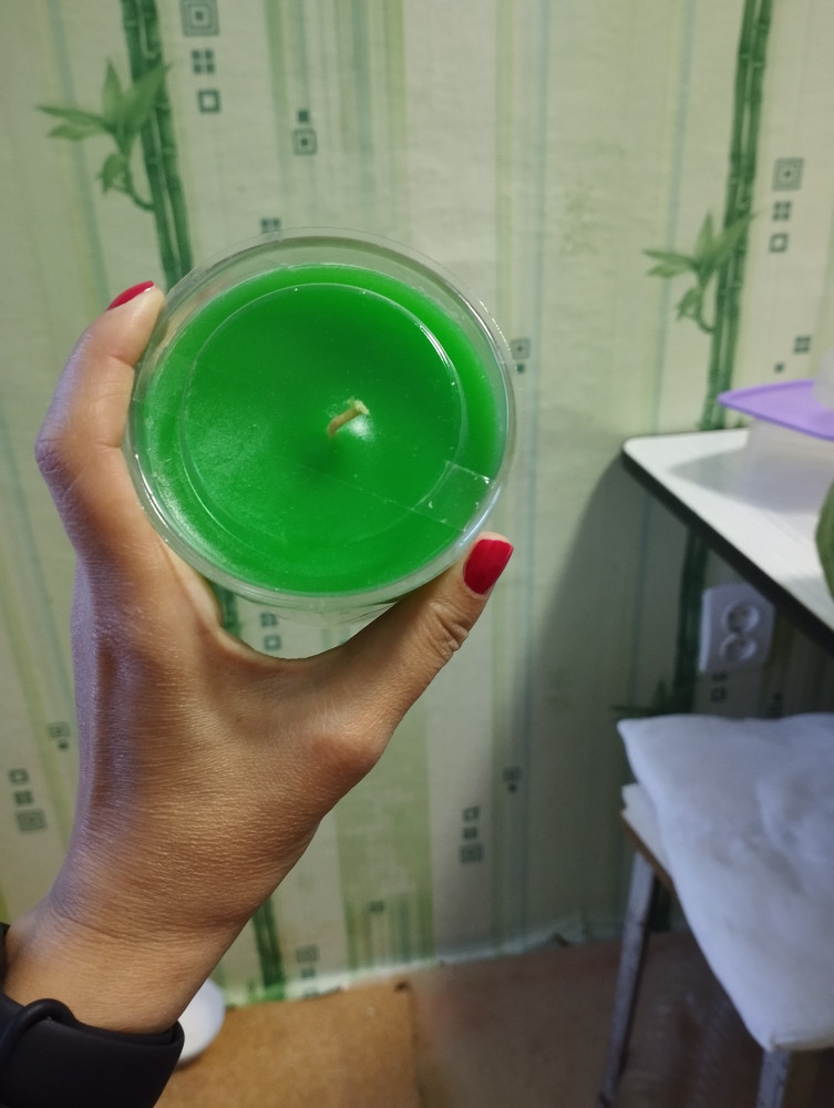 Горит углубляясь и заливается собственным воском. От этого огонек становится меньше и меньше.Приходится отливать,чтоб горела дальше. Воск плохо улетучивается. Запах только при нахождении рядом. Получается свечка большая, толка мало