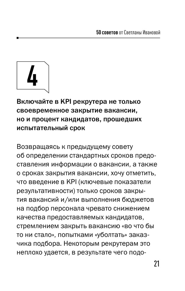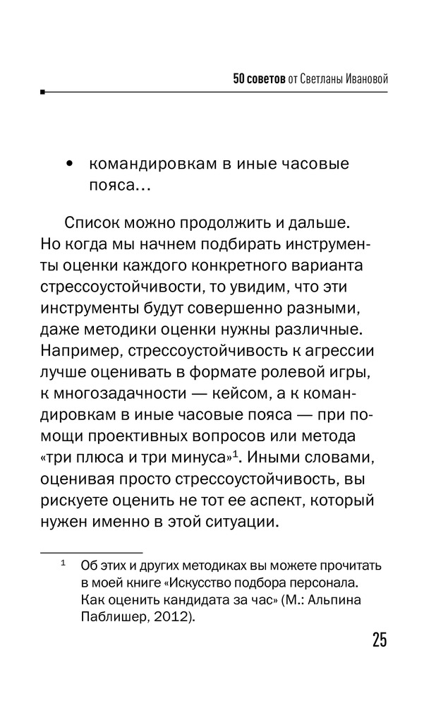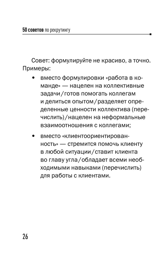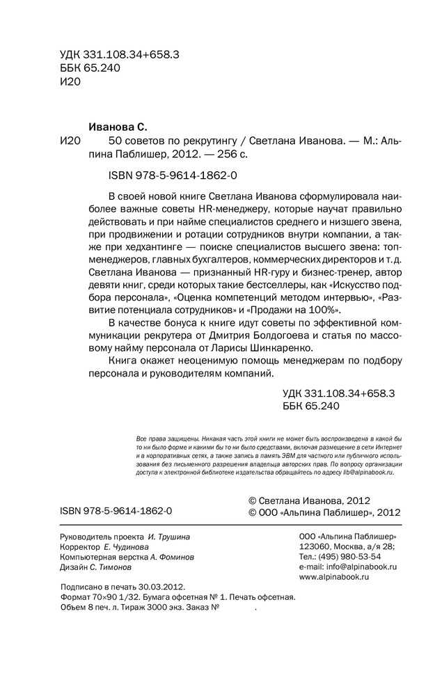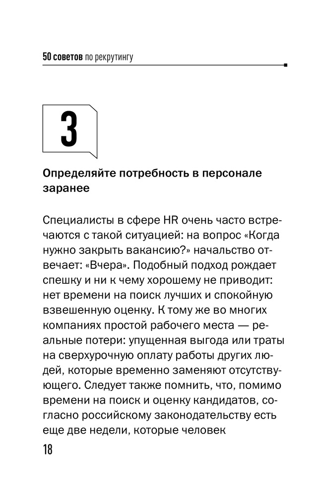 50 советов по рекрутингуВ данный момент этот товар отсутствует в продаже. Возможно, у нас найдется аналогичный или похожий товар здесь. Серия: Менеджмент В какой еще стране вы найдете столько самобытных компаний, оригинальных собственников, многообразие, а возможно, и столкновение различных культур, кроме России? Именно этот факт приводит к очень высокой вероятности ошибки в выборе кандидата при условии, что оценка будет базироваться в основном на анализе его прошлого опыта и успешности. |