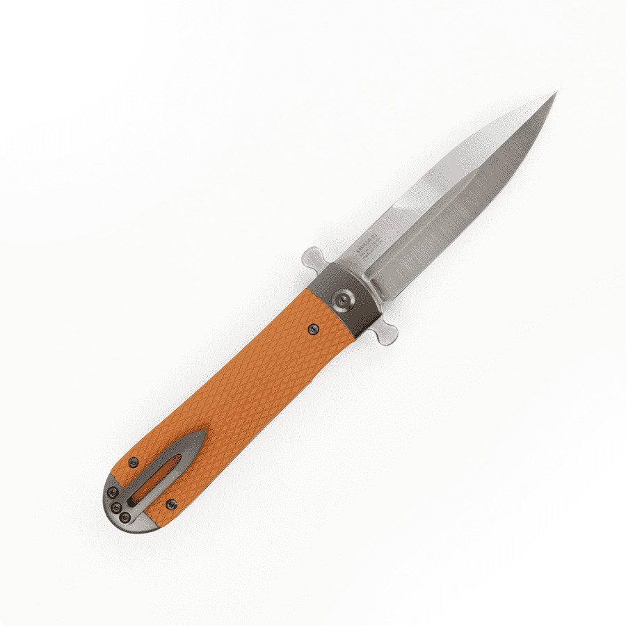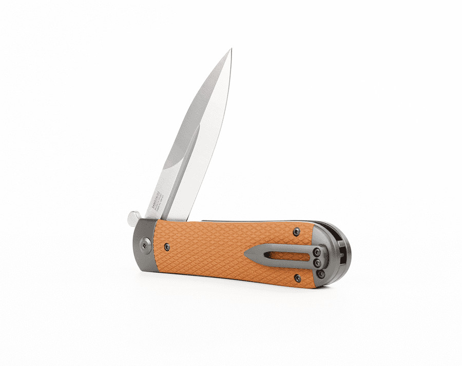 Клинок имеет форму Spear-Point с фальшлезвием со стороны обуха. С такой копьевидной формой легко выполнять колющую работу, когда нужно что-то подковырнуть, наколоть или тонко надрезать. С базовым задачами клинок эффективно справляется за счет своей длины в 94 миллиметра и толщины, составляющей 3.5 миллиметра.