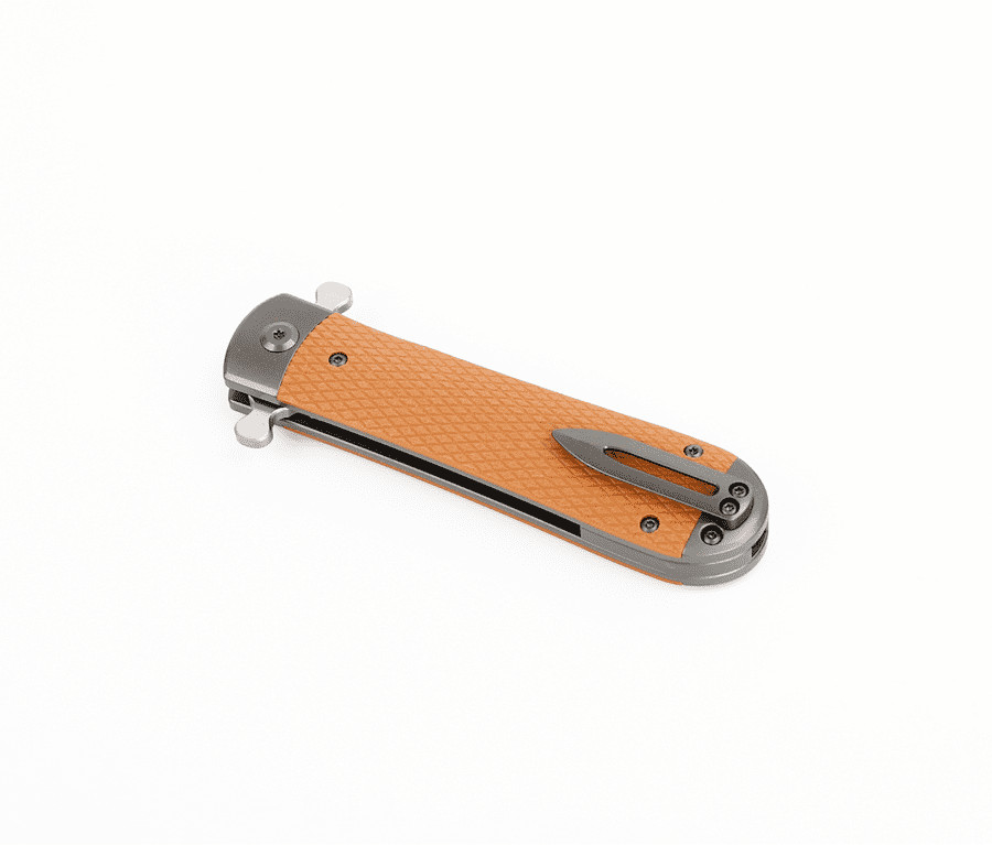 Нож Adimanti by Ganzo Samson — это компактный флиппер, чей клинок надежно запирается в открытом и закрытом положениях. Рукоять инструмента имеет стальную основу с двумя текстурированными накладками из G10 — прочного стеклотекстолита, который высоко ценится за свою стойкость к ударам и механическим повреждениям. В отличие от дешевого пластика, на стеклотекстолите не образовываются микротрещины после продолжительного воздействия низких температур. Материал также не деформируется в случае долгого нахождения под прямыми лучами солнца, не выцветает и не скользит в ладони.