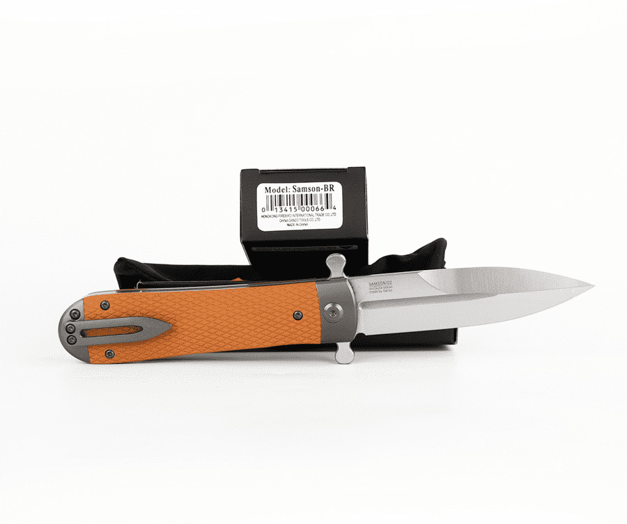 Нож Adimanti Samson имеет визуальное сходство с копьем благодаря симметричному клинку. Изделие рассчитано на использование как в городских, так и полевых условиях, поскольку оно имеет компактные габариты для комфортного ношения в кармане и обладает высокой стойкостью к воздействию агрессивных сред, в особенности ряда кислот и обычной влаги.